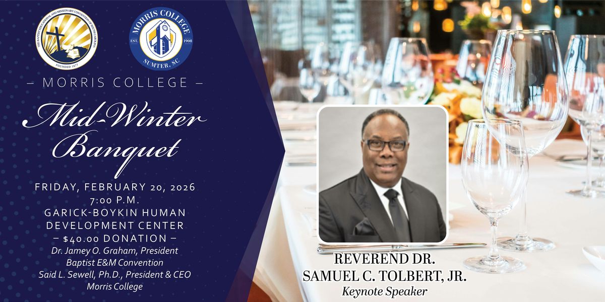 Welcome to the Mid-Winter Banquet at Morris College! Get ready for a night of delicious food, great music, and wonderful company. Join us on February 20, 2026 at 7:00 PM (Eastern Time) for a memorable evening. Let's celebrate the season together in style. See you there!