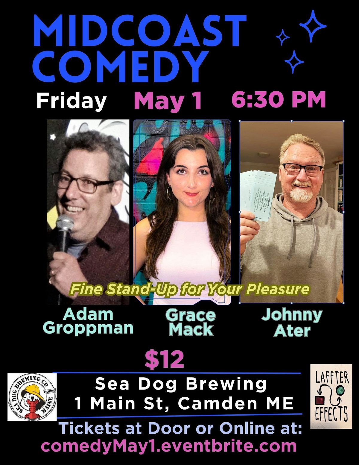 ADAM GROPPMAN: Boston native Adam came up in the Los Angeles comedy scene and moved with his famly to Maine a few years ago. He has impressed audiences in numerous states- and across New England, with his smart, original act about being a barely grown up 'old guy', and his likably skewed takes on pop music, fatherhood, exercise and his long tenure as a substitute teacher in Los Angeles.
