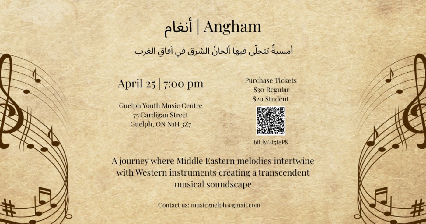 Live music by an ensemble of fantastic local and regional musicians playing music from the Middle East and North Africa. A unique Guelph event. Tickets available at http://bit.ly/4t5teP8