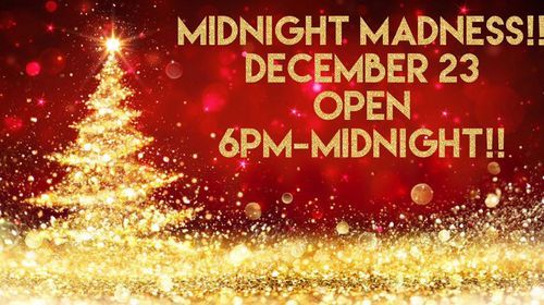Midnight Madness is back!!!…such a fun night in town!!..Enjoy all the businesses that are staying open late!!…I will be open 6pm-midnight!..with new inventory, sales, door prizes, gift card special, snacks!!!…stop by and see me and finish off your last minute shopping!!..can’t wait to see you!!