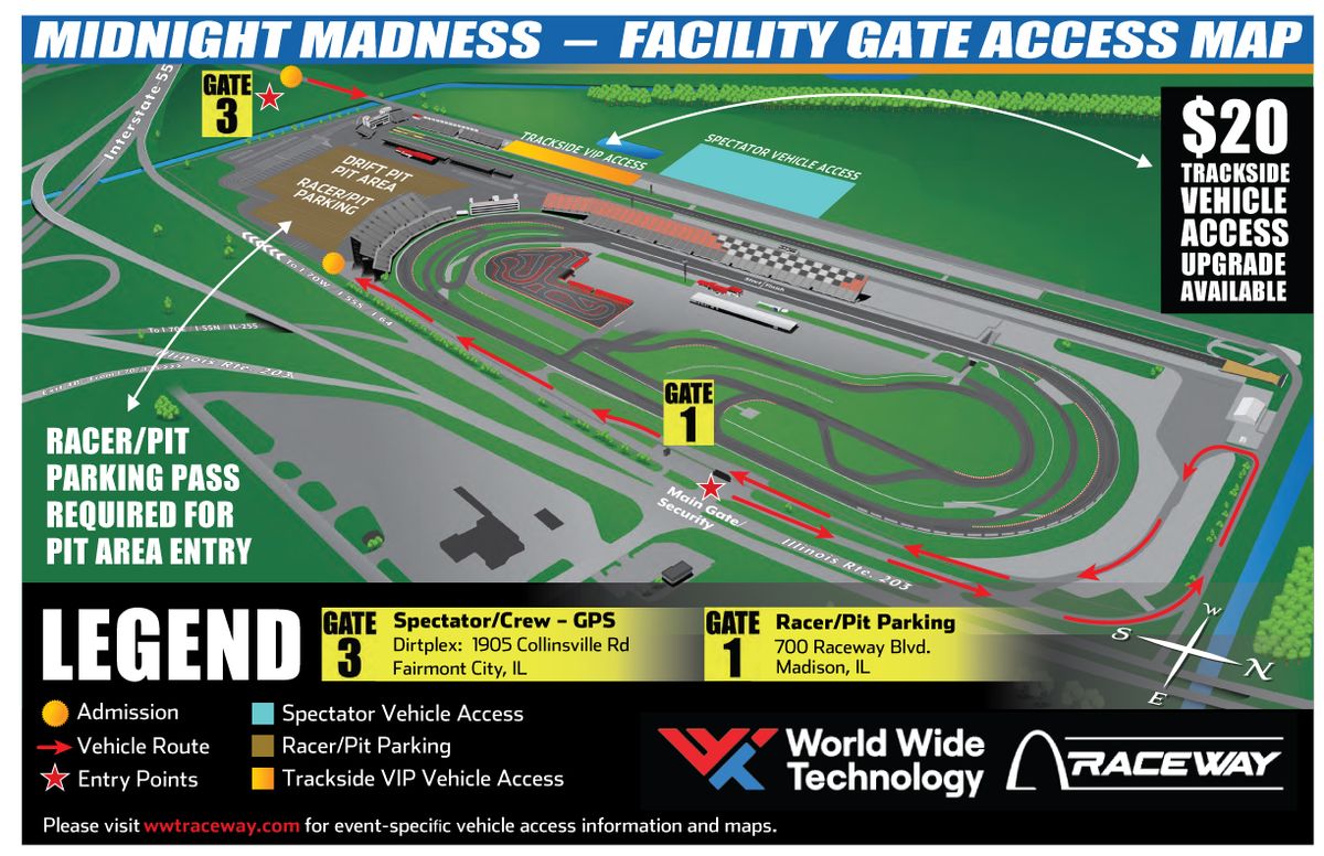 β¨ Enter a world of endless possibilities at Midnight Madness - Racing, where every moment tells a story! ποΈ The stunning World Wide Technology Raceway at Gateway in vibrant Madison, IL transforms into a realm of wonder on May 14th, 2026 at 06:00 PM. π They have crafted an experience that goes beyond the ordinary, combining elements of surprise, delight, and pure entertainment. Every detail has been thoughtfully considered to ensure your journey with us is nothing short of extraordinary. π― Join fellow adventure seekers and memory makers in this celebration of imagination and innovation. π Reserve your spot today and be part of something truly special!http://maps.seatics.com/GeneralAdmissionEvent_2019-09-30_1208_03262021_124112_SVGC_tn.png
