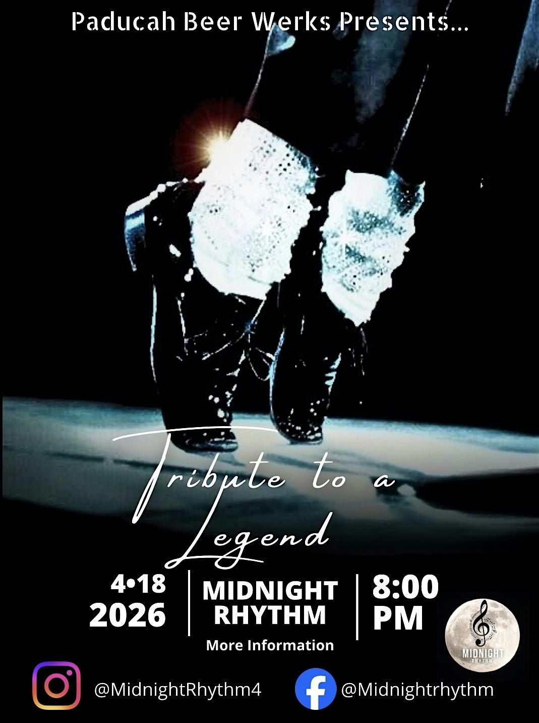 Get ready for an unforgettable night with Midnight Rhythm at Paducah Beer Werks honoring THE LEGEND MICHAEL JACKSON! Join us in person as we celebrate the timeless tunes and incredible legacy of a true music legend. Feel the beats, sing along, and soak up the vibes with fellow fans.