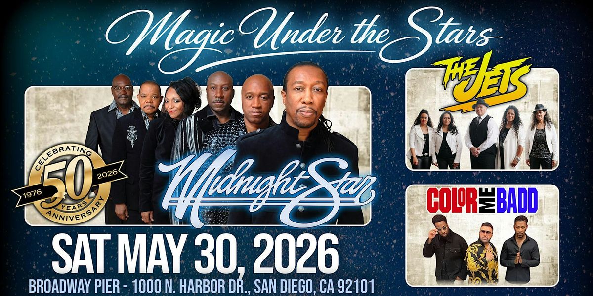 Doors open at 5pm! - Celebrate an unforgettable night of music and nostalgia at The 50th Anniversary of Midnight Star, featuring special performances by The Jets and Color Me Badd. Join us on May 30, 2026, at Broadway Pier in San Diego for an evening filled with iconic hits, electrifying energy, and timeless R&B and pop favorites. Don’t miss this milestone celebration honoring five decades of Midnight Star’s legendary sound—gather your friends, feel the rhythm, and make memories on the waterfront.