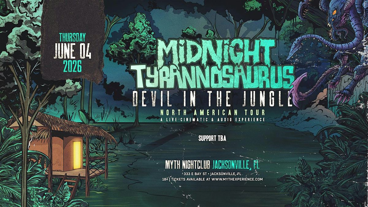 Midnight Tyrannosaurus brings the Devil In The Jungle Tour to Myth Nightclub for a full-scale cinematic audio experience blending crushing bass, dark visuals, and raw energy.