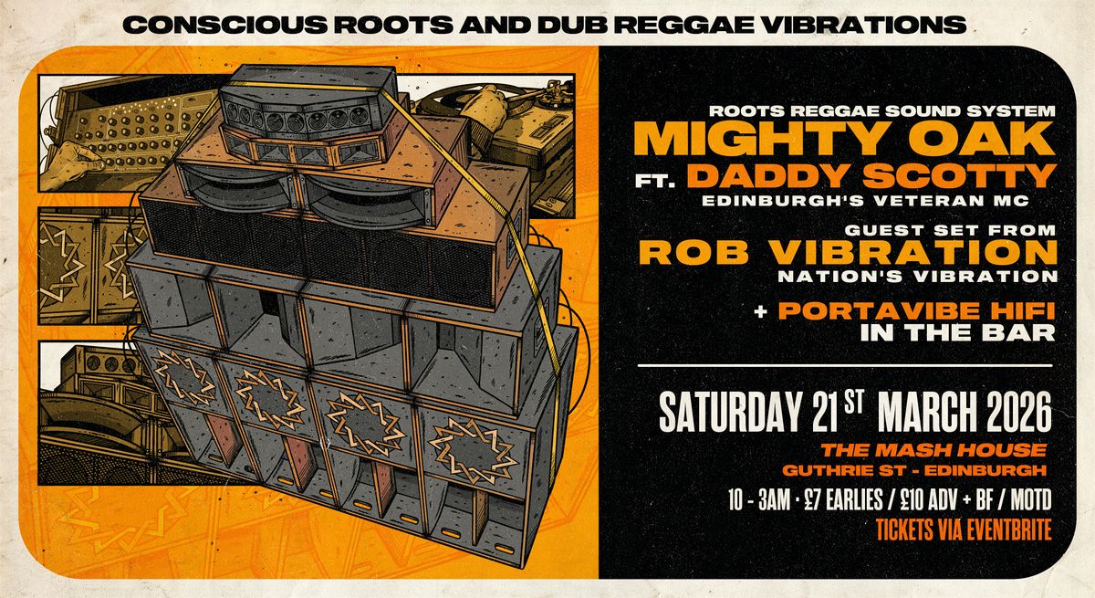 Mighty Oak sound system in session ft. Daddy Scotty on the mic with guest selection from Rob Vibration + portaVibe Hifi in the bar.