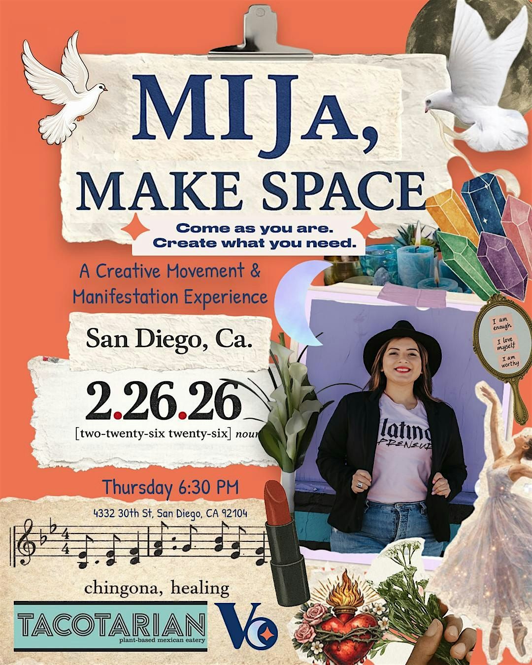 This 2-hour experience invites you to slow down and lead with intuition rather than pressure. Through intuitive movement, collage making, music rooted in Latin culture, journaling prompts, and storytelling, participants are invited to explore creativity as a form of self-connection.