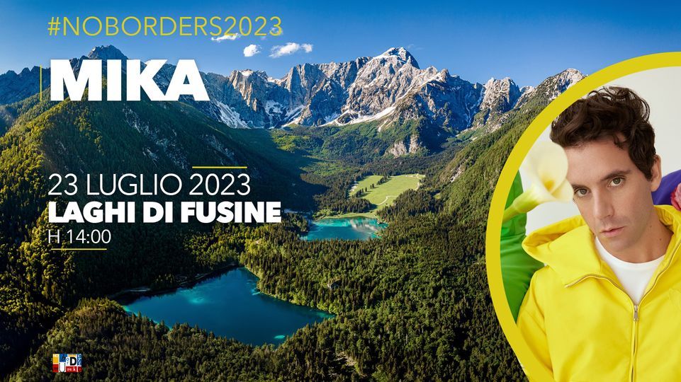 Mika è il terzo artista internazionale che si esibirà al #NoBorders2023: domenica 23 luglio ai Laghi di Fusine ore 14:00 Biglietti in vendita online su Ticketone e nei punti vendita autorizzati Ticketone: https://bit.ly/MikaTarvisio