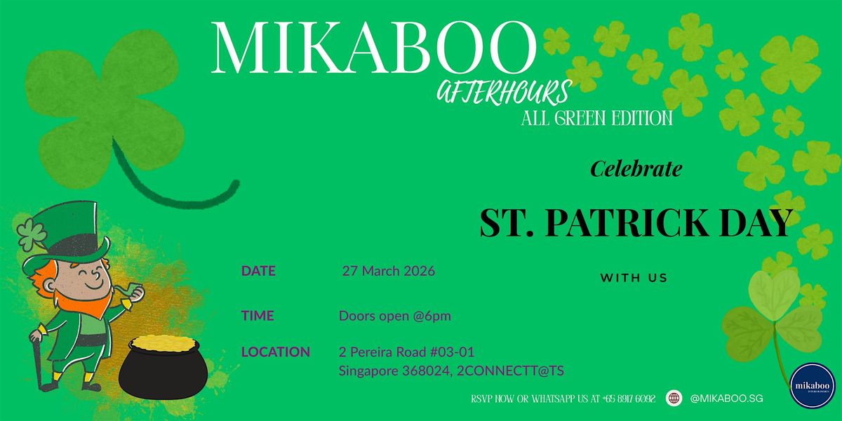 Get ready for a chill night at 2ConnectT@TS! Join us on March 27, 2026 at 6:00 PM (SGT) for the All Green Edition of Mikaboo AfterHours. Expect great vibes, cool people, and a laid-back atmosphere. Don’t miss out on this in-person event where the night is all about good times and green themes. See you there!