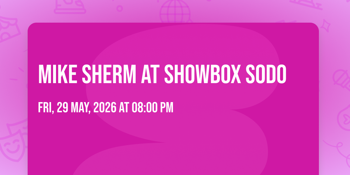π Welcome to Mike Sherm at Showbox SODO, where the impossible becomes possible and dreams take flight! ποΈ Join us at Showbox SODO in the heart of Seattle, WA for an event that will redefine your expectations. π On May 29th, 2026 at 08:00 PM, witness the transformation of space and time into something truly magical. β¨ It's a curated experience combining the best of innovation, entertainment, and community spirit, creating moments that will be remembered for years to come. Whether you're a first-time visitor or a seasoned enthusiast, prepare to be amazed. π Book now to ensure your place in this unforgettable experience!