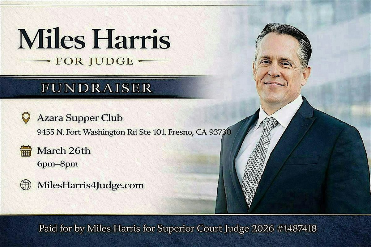 Join us in person to support Miles Harris on his journey to become judge! This is a great chance to connect, chat, and show your support for a candidate who truly cares. Bring your friends, enjoy good vibes, and help make a difference. Don’t miss out on this awesome opportunity to be part of something big!