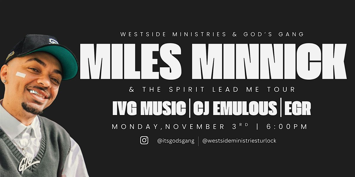 Join us for a concert with Miles Minnick, CJ Emulous, EGR and IVG Music Monday, October 3rd! Doors open at 6:00pm.