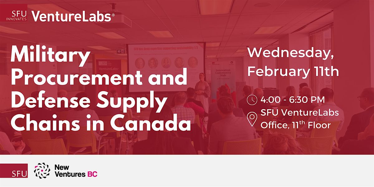 SFU VentureLabs is pleased to host an engaging in-person panel discussion on “Military Procurement and Defense Supply Chains in Canada.” This session brings together a diverse group of experts, including senior executives from dual-use companies, investors, public sector leaders, and consultants from both British Columbia and Ottawa.