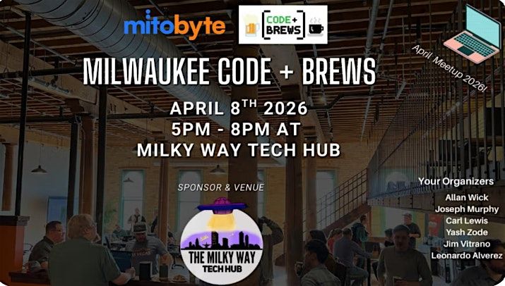 For our April Meetup we arepartnering with Code + Brews, a collaborative meetup for developers, founders, and tech enthusiasts.