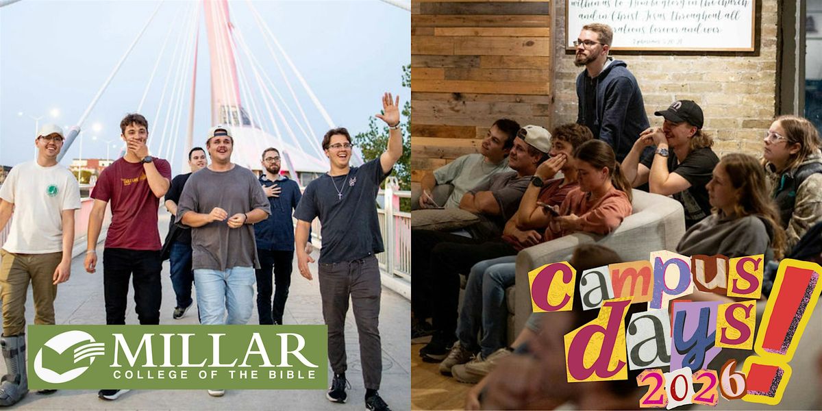 Are you thinking about your next steps in life and considering Bible College, but just aren't sure what that looks like? Are you looking for something fun and productive to do during your Spring Break? Millar Winnipeg is excited to be hosting Campus Days once again, from March 31st, 2026 to April 2nd, 2026 at our campus at 782 Main St. in Winnipeg, Manitoba!