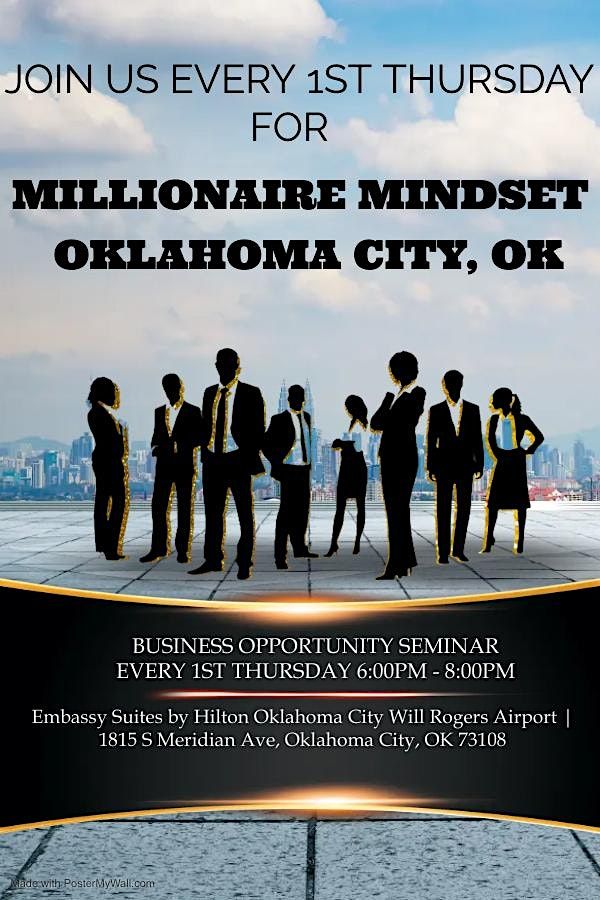 Join us for an incredible in-person event where you can unlock the secrets to a Millionaire Mindset. Get ready to ignite your financial potential and take control of your wealth-building journey every 1st Thursday at Embassy Suites by Hilton Oklahoma City Will Rogers Airport located at 1815 South Meridian Avenue, Oklahoma City, OK 73108.