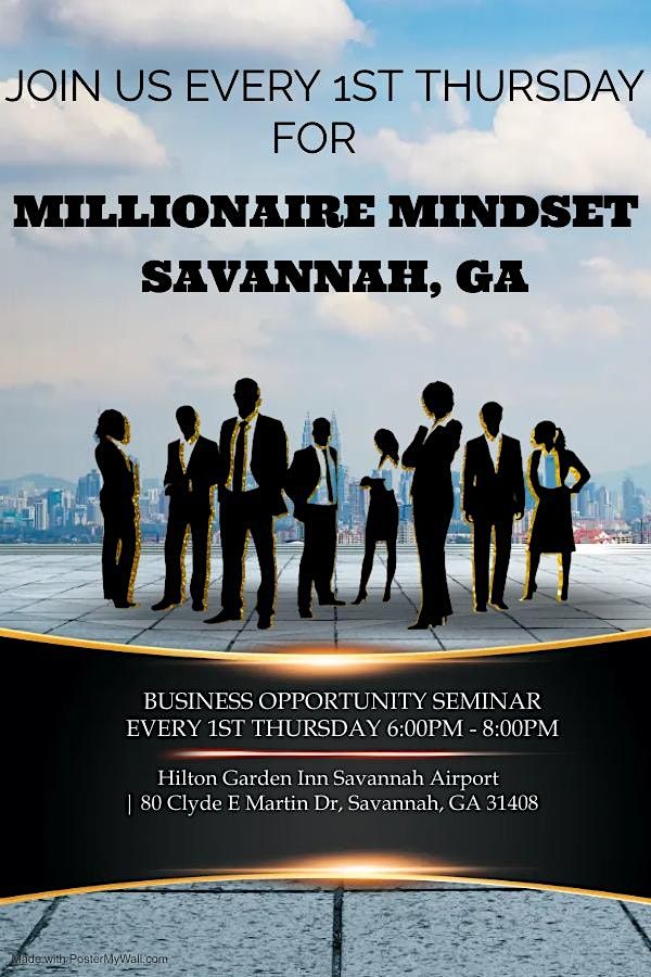 Join us for an exciting event that will transform your mindset and pave the way to financial success! Get ready to unlock your full potential and embrace the mindset of a millionaire. This event takes the first Thursday of each month at the Hilton Garden Inn Savannah Airport located at 80 Clyde E Martin Drive, Savannah, GA 31408.
