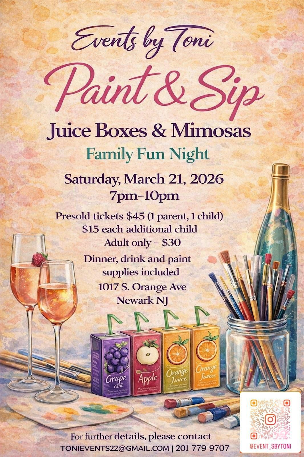 Join Us for Mimosas and Juice box Paint & Sip! A family Fun night