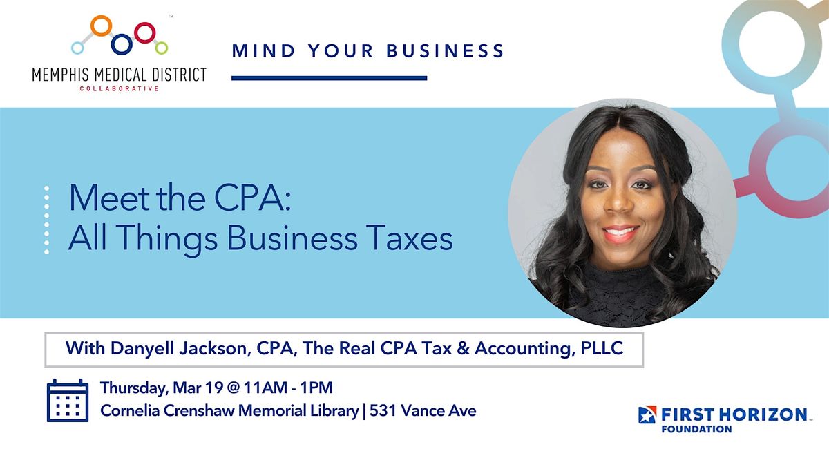 The Memphis Medical District Collaborative (MMDC) is gearing up for its first installation of the 2026 "Mind Your Business" series. "Meet the CPA | All Things Business Taxes" will be held on Thursday, March 19th, @ 11:00am. The "Mind Your Business" series is an educational platform of classes taught by subject matter experts to assist small business owners and entrepreneurs to scale with the skills for business cycle planning, marketing strategies, workforce building, business financials and taxes, and succession planning.
