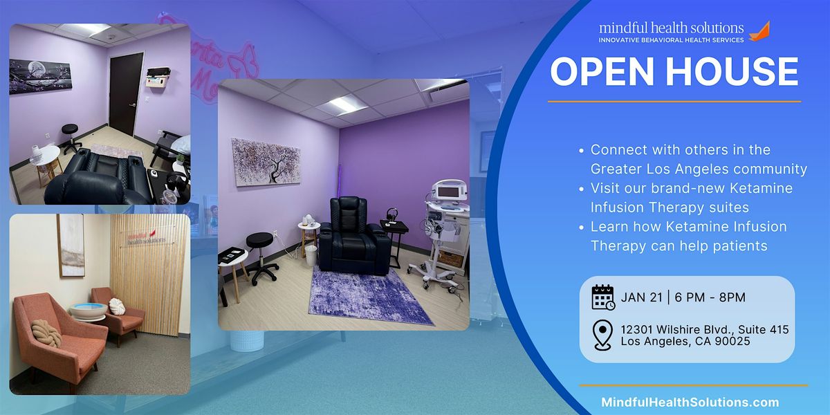 Mindful Health Solutions is excited to host the mental health community at our Santa Monica clinic for an evening dedicated to Ketamine Infusion Therapy (KIT). This special open house event is a chance to connect with others in the mental health community and learn more about how we're changing patient lives through innovative KIT treatments.