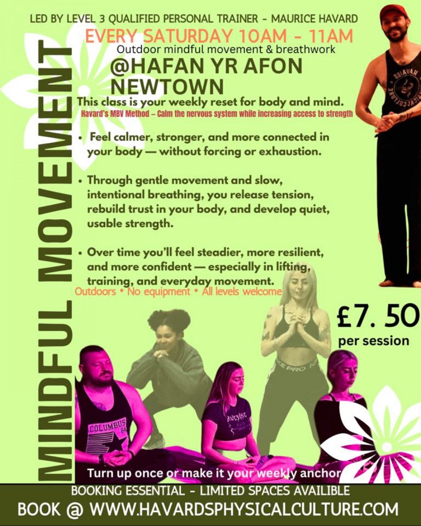 You’ll leave the session feeling looser, lighter and more energised, with tools you can use in everyday life.