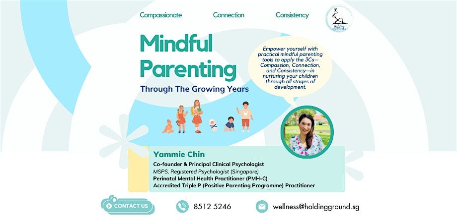 This series is facilitated by Ms Yammie Chin, co-founder of Holding Ground (Psychology Practice). She is a Principal Clinical Psychologist (MSPS, Registered Psychologist Singapore), Perinatal Mental Health Practitioner (PMH-C), and Accredited Triple P (Positive Parenting Programme) Practitioner. She is a mother of two girls.
