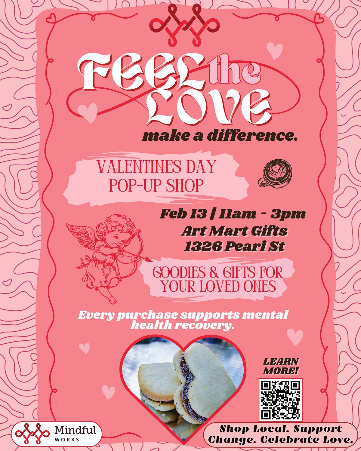 Feel the love! Make a Difference! Shop Mindful Works at the Art Mart Valentine's PopUp! Every purchase promotes mental health recovery. February 13th, 11am-3pm.