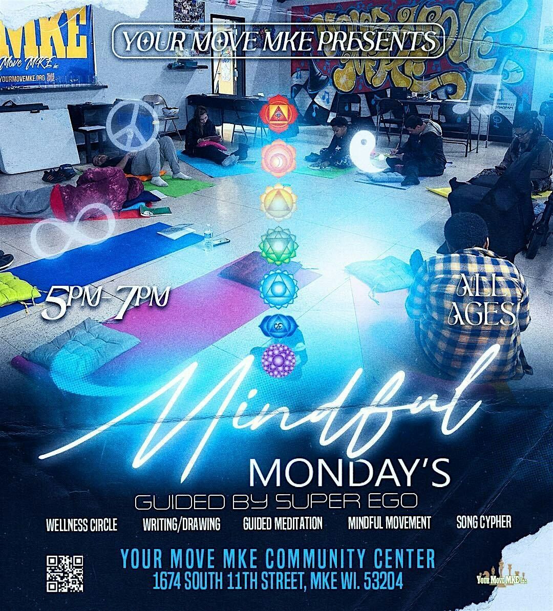 Mindfulness Mondays (Guided by Super Ego) is a free weekly gathering for all ages focused on mindfulness, emotional awareness, self-expression, and connection.