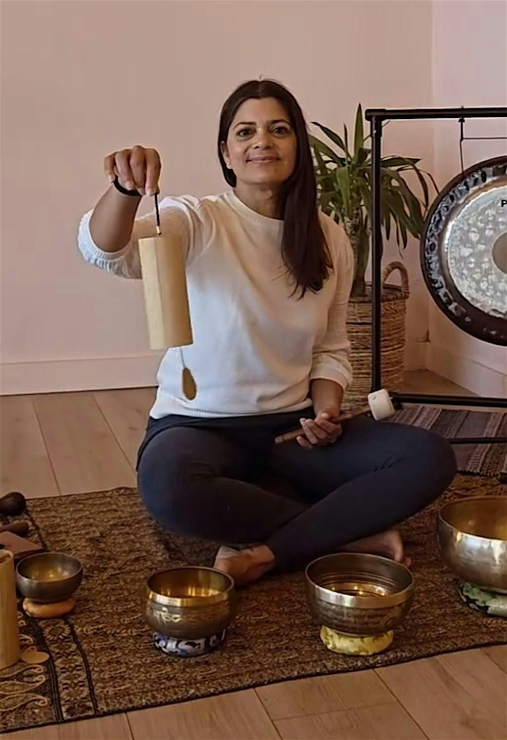 Drawing on guided meditation, gentle movement, and instruments such as singing bowls and koshi chimes, Rehana creates carefully held experiences that help regulate the nervous system and foster a sense of calm and connection. She works with a range of individuals and groups, including those in high-pressure creative and professional environments, offering sessions, workshops, and group experiences that are both restorative and accessible. Her approach is inclusive and trauma-informed, with a focus on meeting people where they are and creating supportive spaces for reconnection through breath, movement, and sound.
