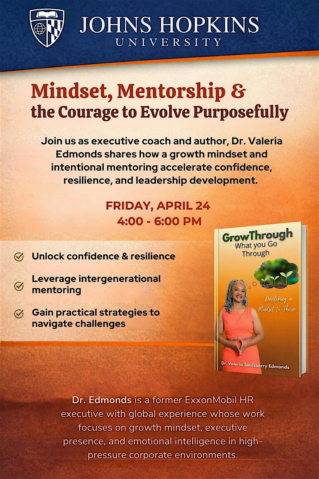 Join us as executive coach and auther, Dr. Valeria Edmonds, shares how a growth mindset and intentinal mentoring accelerates confidence, resilience, and leadership deveolpment.