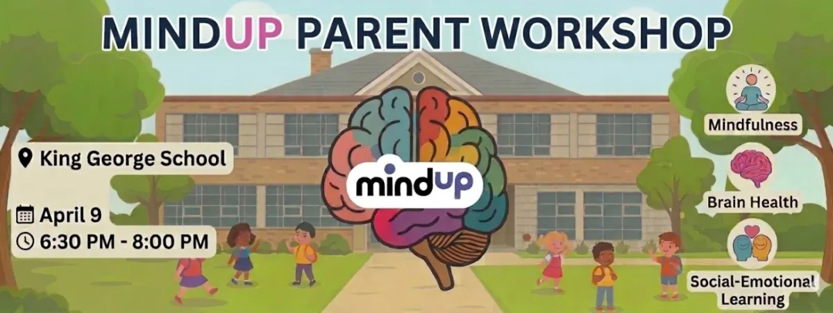 This evening is an opportunity to learn more about the MindUP program King George School is using to teach social emotional well being. MindUP is a classroom based program that teaches children strategies guided by the fields of neuroscience, mindful awareness training, social emotional learning and positive psychology to support success in the classroom and in life.Find out more about MindUP hereJoin us in person or online, the link will be sent out closer to the date to those who register for an online ticket.
