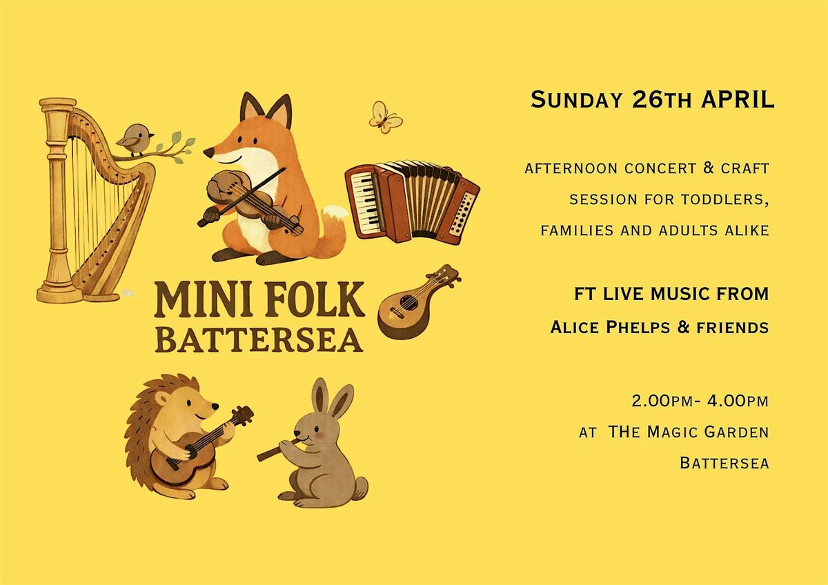 We invite you and your little ones to The Magic Ggarden Battersea for a cosy afternoon concert led by Multi instruentalist singer-songwriter Alice Phelps ft some of London's finest musicians as guests, alongside a hands-on spring craft table hosted by Mini Folk organiser Dila V.