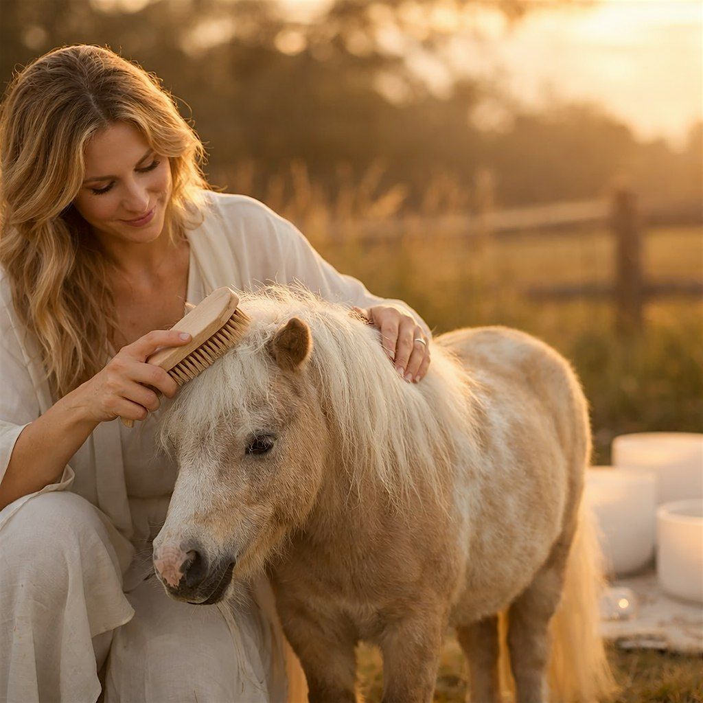 Relax in a peaceful outdoor setting with gentle miniature horses and a calming crystal sound bath. This experience supports nervous system regulation through quiet connection, soothing sound, and intentional presence. No experience needed — just come as you are and unwind.