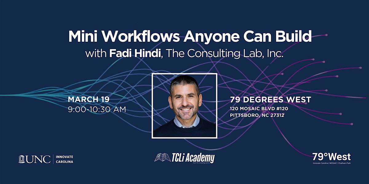 Innovate Carolina is hosting a hands-on AI learning series at 79°West designed to help participants build practical, everyday AI skills. Led by , each session focuses on simple, actionable ways to use AI—from clarifying ideas and reading smarter to building mini-workflows, improving decision-making, and rapidly prototyping real solutions. The series runs monthly from January through May, with each workshop offering tools participants can immediately apply to their work.