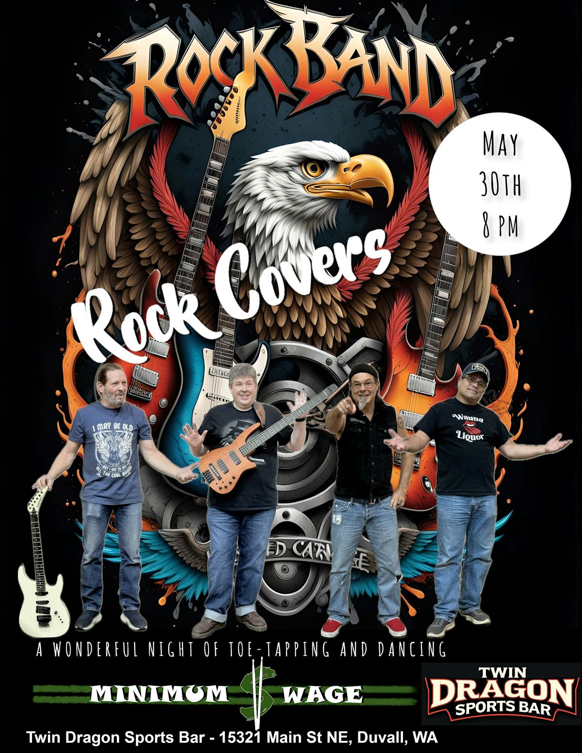 Get ready to rock as Minimum Wage Band hits Twin Dragon Sports Bar live—good vibes and great tunes guaranteed!About this Event
