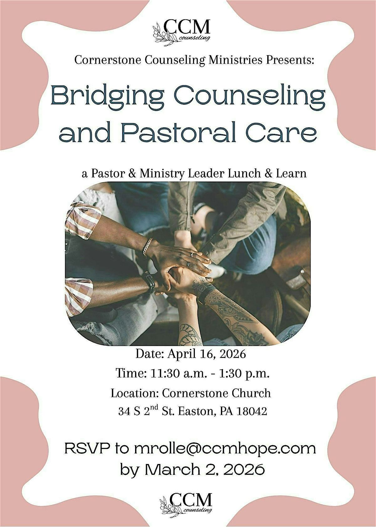 This gathering is designed to offer space for ministry leaders to learn more about how CCM extends the work of Church/Pastor with Christ-centered counseling, as well as learn practical ways to support individuals who seek help in the local church. Our goal is to provide a refreshing and helpful time for those who carry the weight of shepharding others.