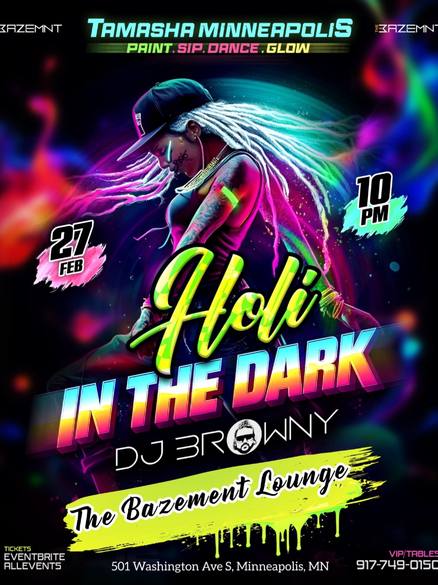 MINNEAPOLIS' HOLI IN THE DARK @THE BAZEMENT LOUNGE