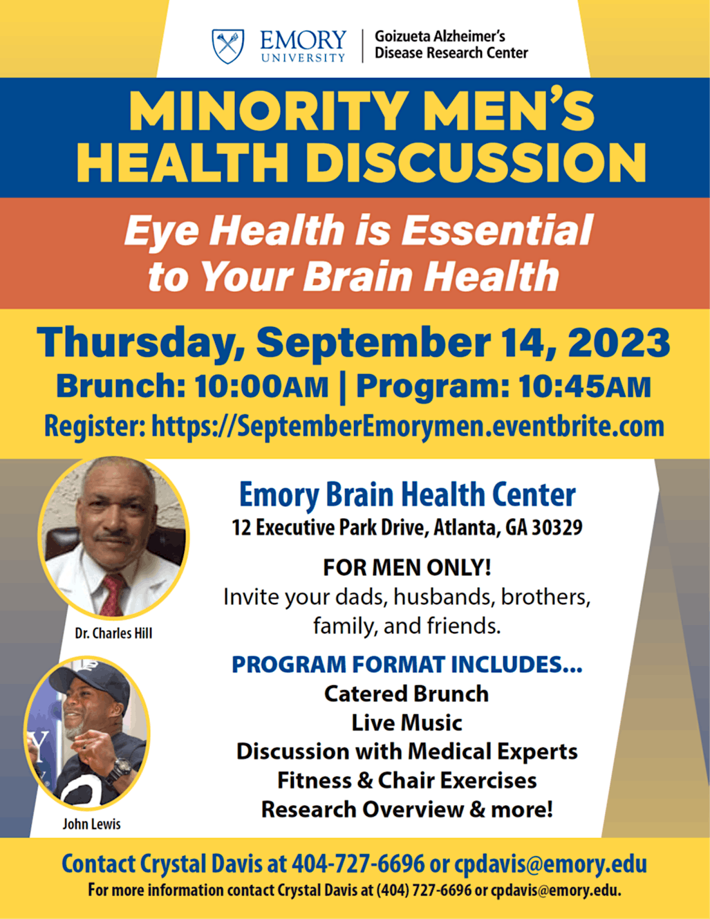 Minority Men make plans to join us at the Emory Brain Health Center (12 Executive Park Drive, Atlanta, GA 30329 - First Floor Training Rooms)