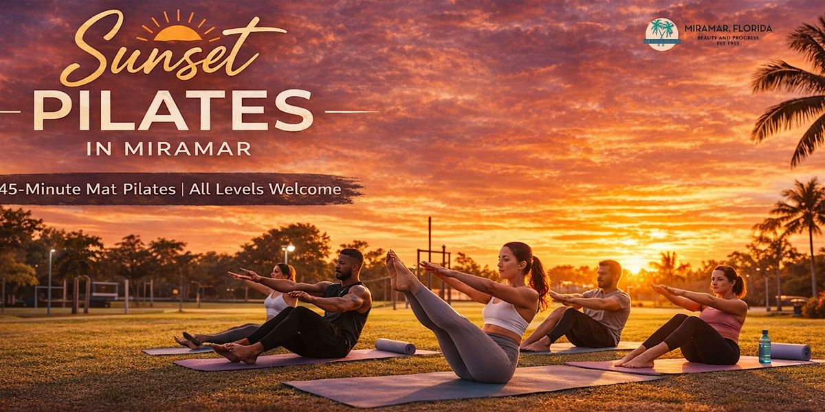 Experience the perfect end to your day with a Sunset Mat Pilates class in the City of Miramar! Enjoy a 45-minute outdoor Pilates class designed to tone your body, strengthen your core, and help you unwind while enjoying the beautiful sunset at Miramar Regional Park.