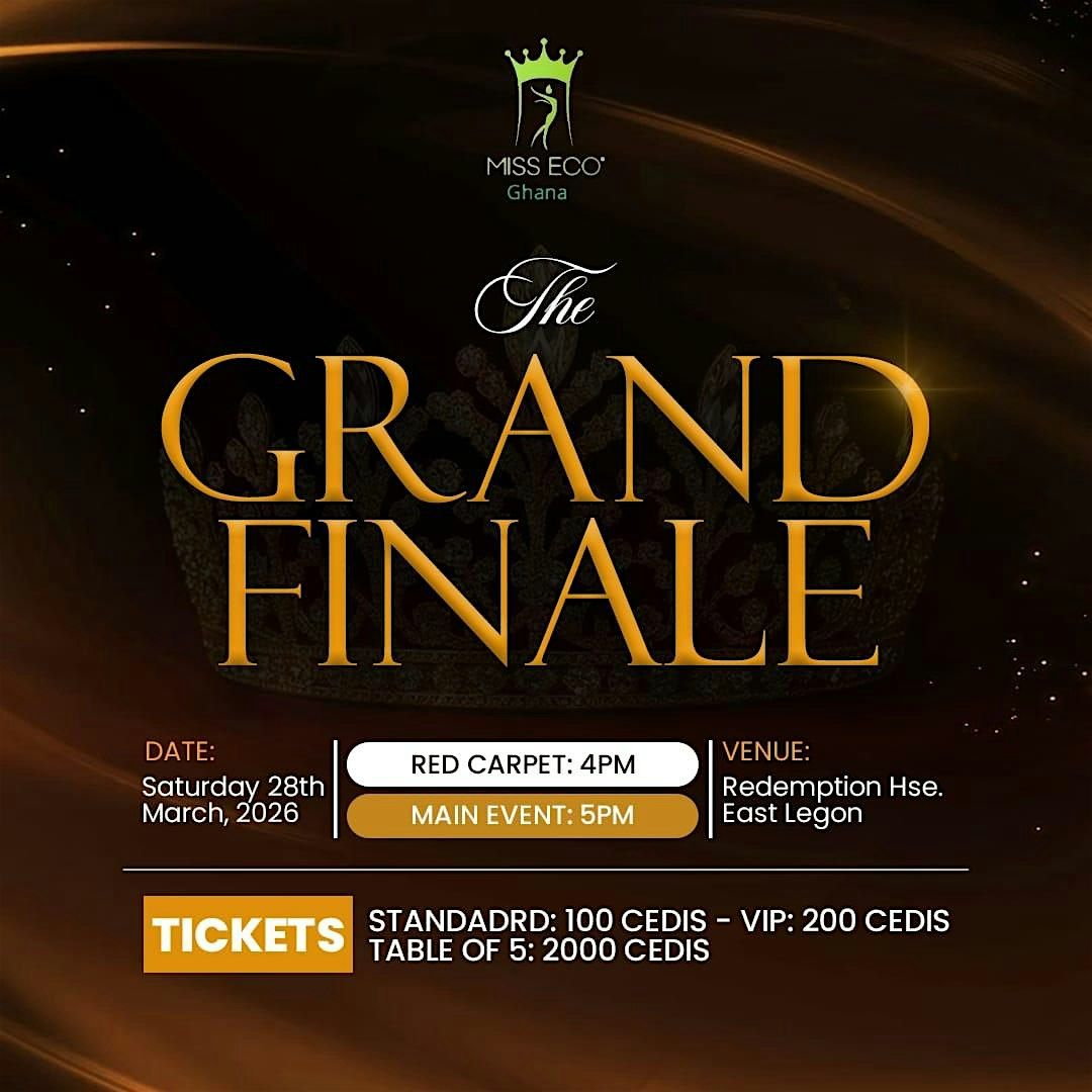 Join us in person for an unforgettable celebration of beauty, brains, and environmental love. Miss Eco Ghana 2025 is more than a pageant—it's a vibrant movement towards a greener future. Come witness amazing talents, inspiring speeches, and dazzling performances all wrapped up in a fun and lively atmosphere. Don't miss out on this exciting event that brings together passion and purpose!