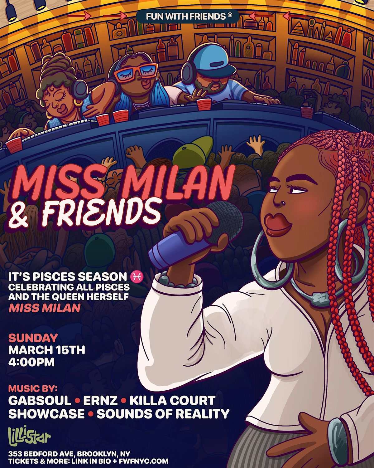 Join Miss Milan and FUN WITH FRIENDS® for a special Pisces Season birthday celebration bringing together great music, great energy, and even better people.