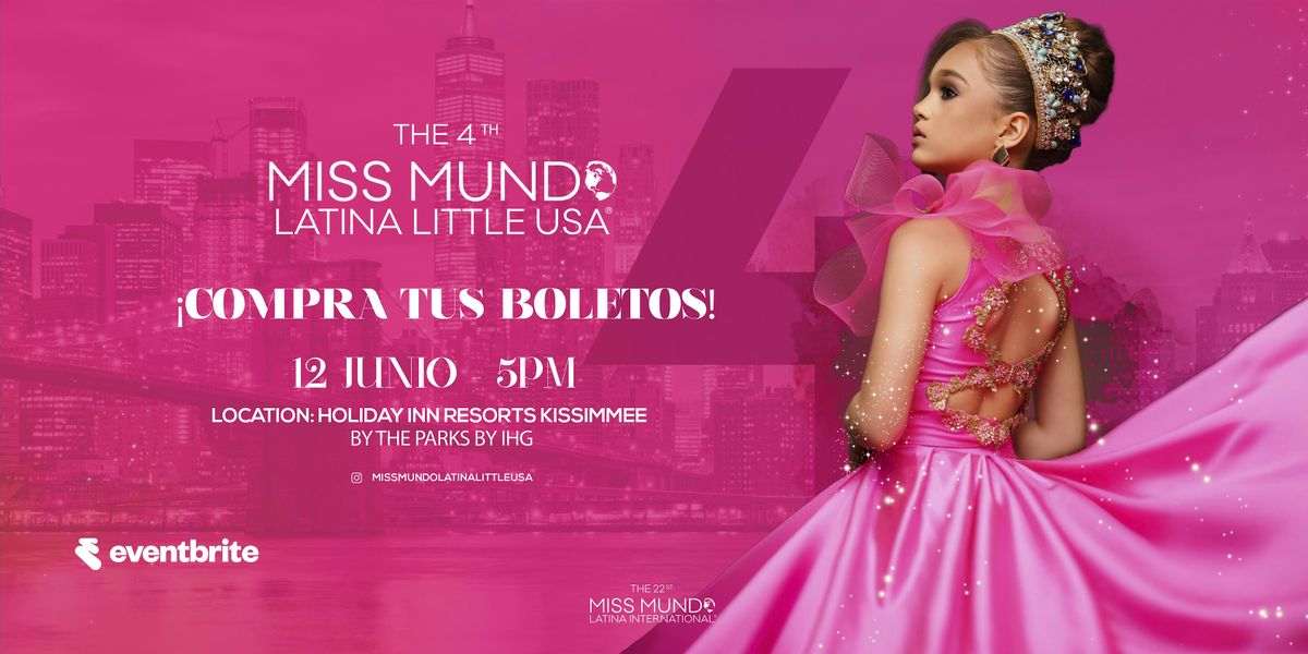 ¡Únete a nosotros para celebrar la vigésima segunda edición del certamen infantil número uno, Miss Mundo Latina Little USA! El evento se llevará a cabo el próximo 13 de junio de 2025 en las espectaculares instalaciones del Holiday Inn Resort Kissimmee By the parks. ¡No te pierdas nuestra alfombra pink, que comenzará a las 5:00 P.M., y sé parte de esta experiencia inolvidable!
