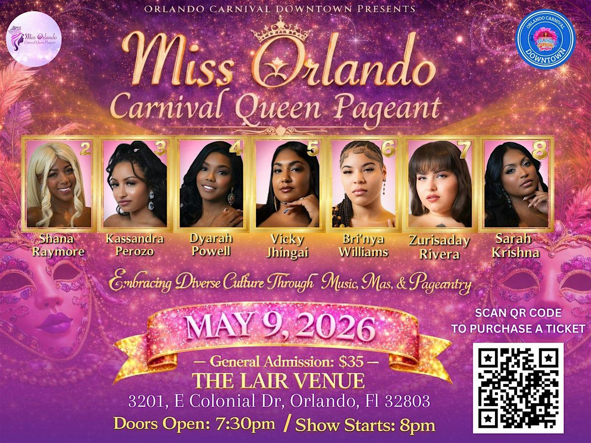 Join us for the return of the annual Miss Orlando Carnival Queen Pageant! This night will be an unforgettable display of elegance, culture, and beauty as the seven pageant contestsants highlight Orlando's Caribbean Carnival excellence. ✨💜🩷
