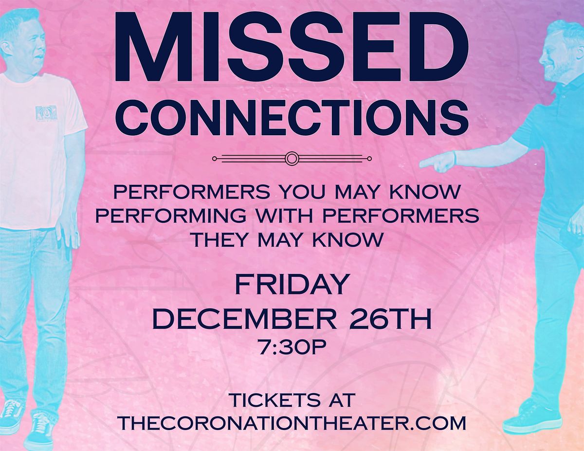 Welcome to Missed Connections! A show where improvisers across the city get a chance to meet and perform with people they may know. A showcase of Houston talent and celebration of our creative community.