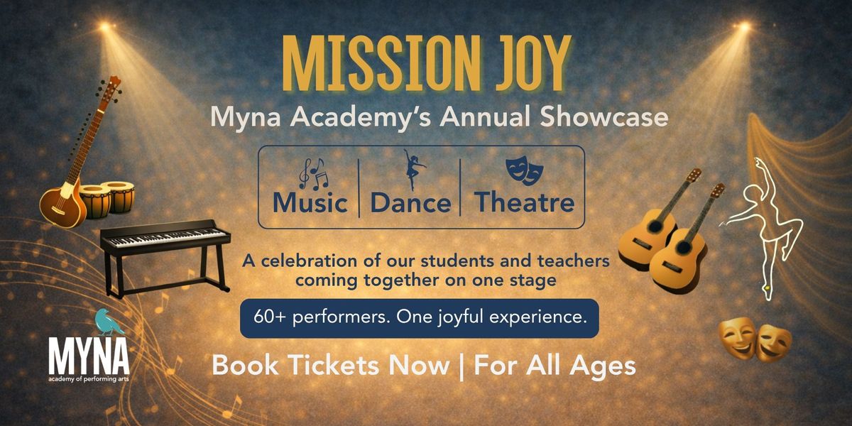Myna Academy of Performing Arts invites you to Mission Joy, its first annual showcase - an unforgettable evening of music, dance, theatre and storytelling celebrating the transformative power of the arts, hosted by the inimitable Rajit Kapur.