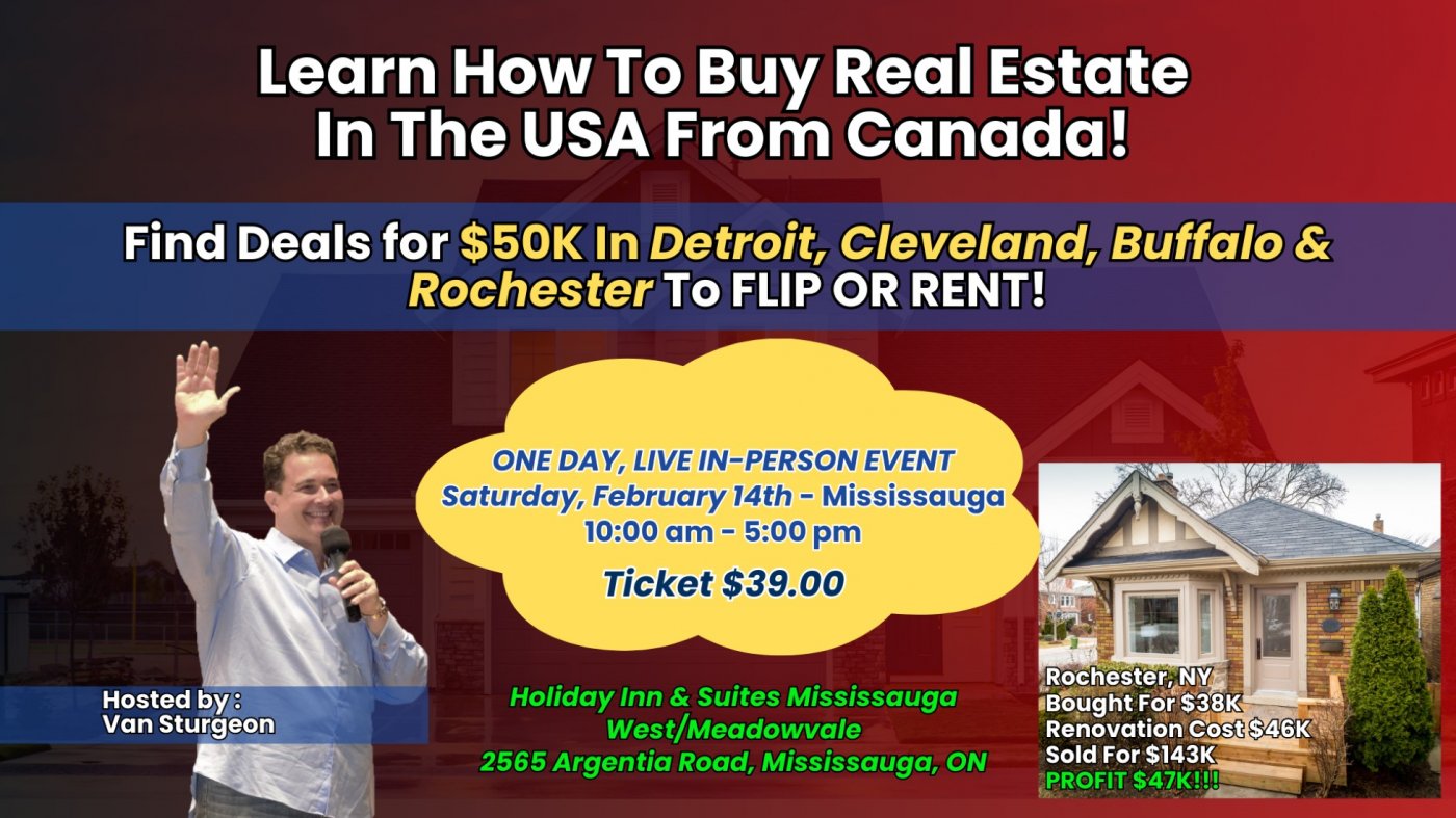 This event is being organized by Van Sturgeon, a successful real estate investor for over 30 years who flips and owns rental properties in Detroit, Cleveland, Moncton and Tampa markets.
