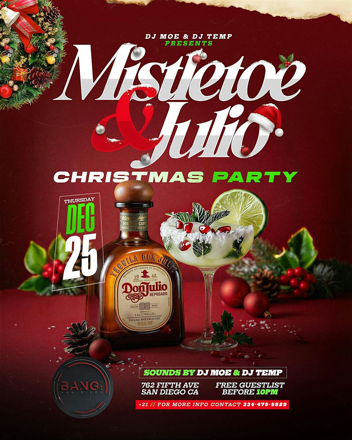 MISTLETOE & JULIO @ BANG, CHRISTMAS NIGHT COME CELEBRATE YOUR CHRISTMAS THE ADULT WAY WITH US, GREAT MUSIC, DRINKS & HOOKAH MERRY CHRISTMAS.About this Event