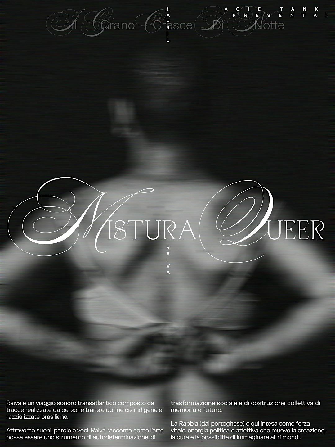 Attraverso suoni, parole e voci, Raiva racconta come l’arte possa essere uno strumento di autodeterminazione, di trasformazione sociale e di costruzione collettiva di memoria e futuro. La Rabbia (dal portoghese) è qui intesa come forza vitale, energia politica e affettiva che muove la creazione, la cura e la possibilità di immaginare altri mondi.