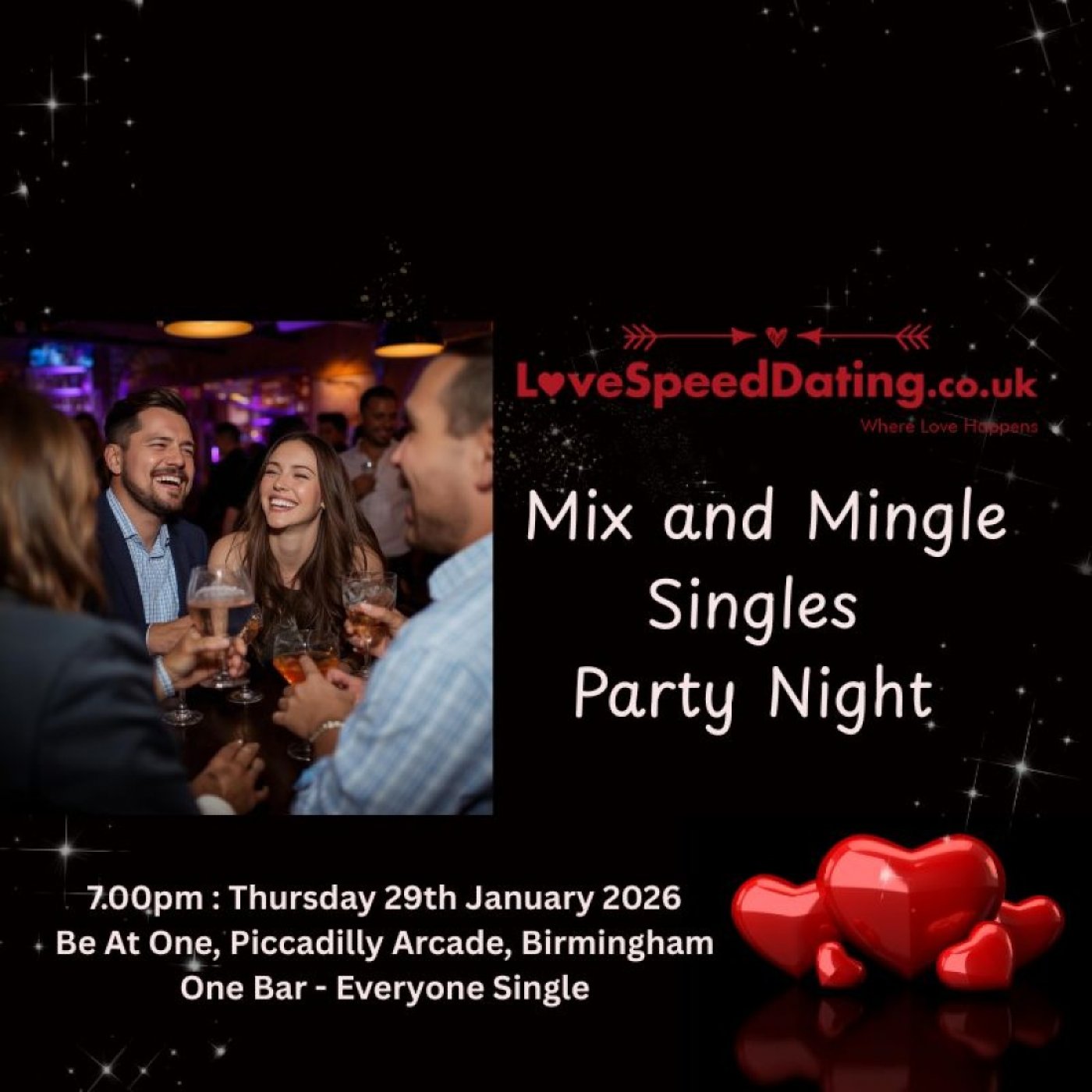Get ready for one of Birmingham’s most fun and flirty nights out for singles — hosted by Love Speed Dating at the stylish Be At One Cocktail Bar, Piccadilly Arcade from 7:00pm–9:00pm (with the party continuing late into the night!).