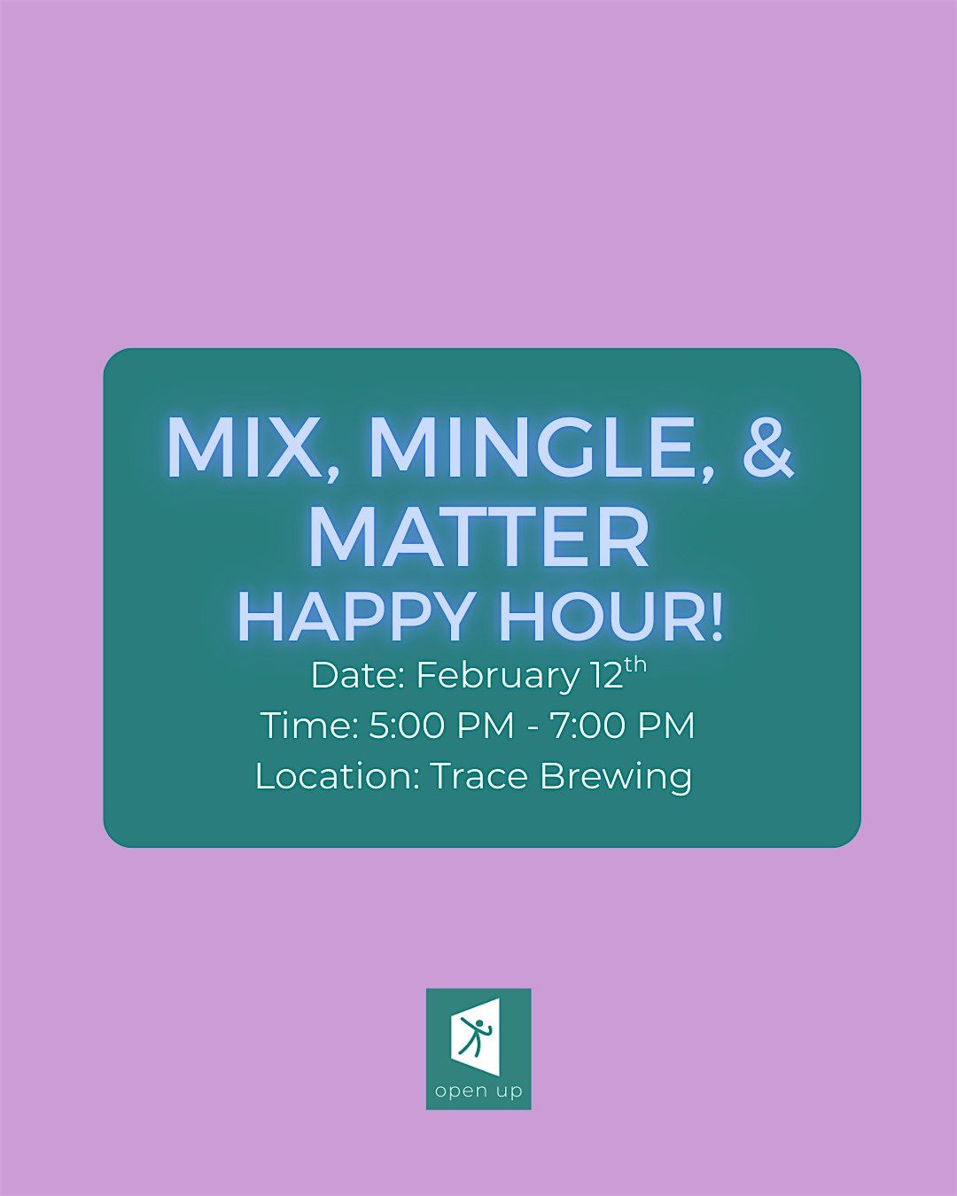 Join us for a fun evening of mixing, mingling, and meaningful conversations at our Mix, Mingle & Matter Happy Hour!