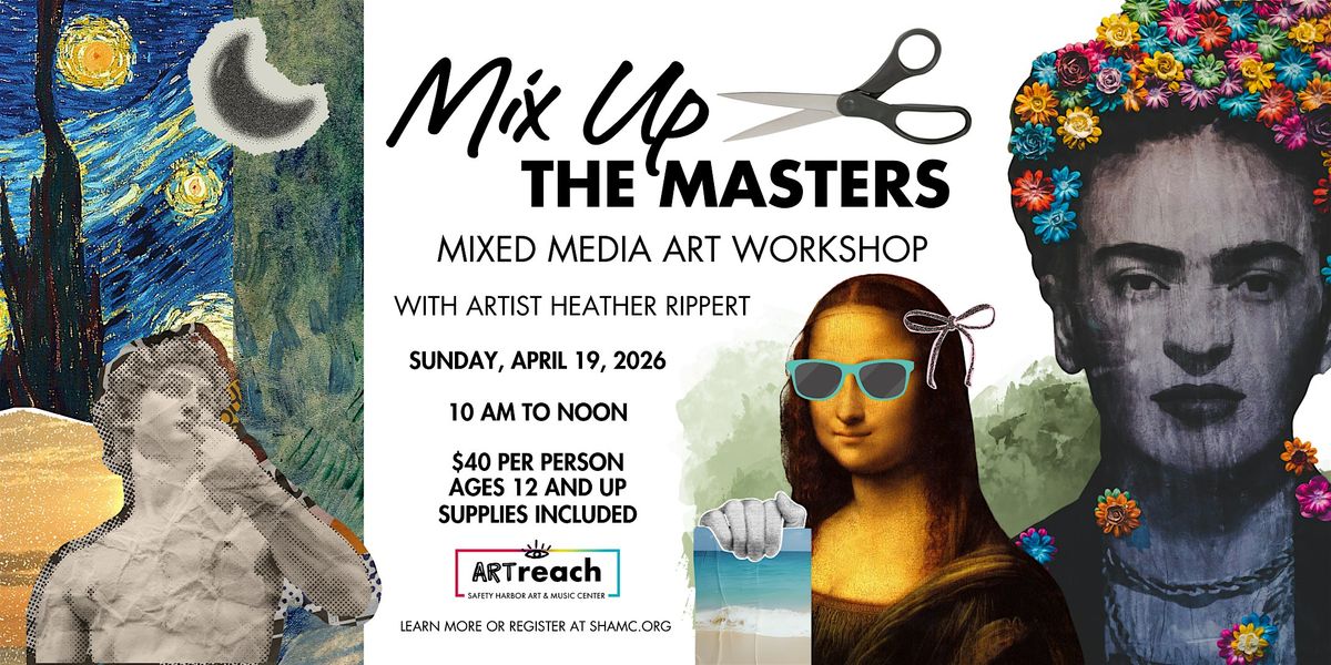 Mix Up the Masters is a hands-on mixed media workshop led by artist Heather Rippert that invites you to break the rules and reimagine art history. Participants will cut, layer, and remix iconic imagery to create bold, original works of art. All levels welcome! Bring your curiosity and a willingness to experiment. All supplies included.